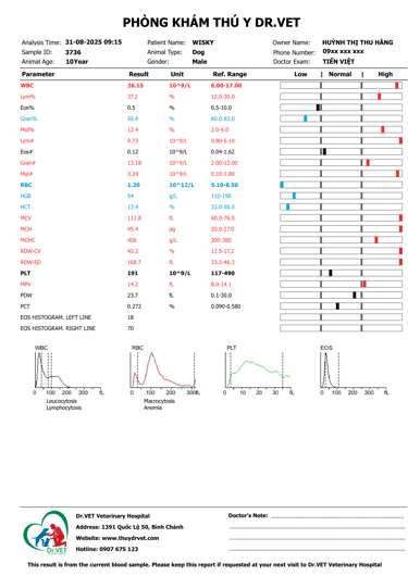 Tại bệnh viện thú y Dr.Vet, quy trình xét nghiệm sinh lý máu được thực hiện một cách rõ ràng và nhanh chóng. Thiết bị máy móc hiện đại được đầu tư mới và được hiệu chỉnh hàng ngày, nên đảm bảo cho kết quả chính xác. Việc xét nghiệm không chỉ giúp xác định bệnh trạng mà còn tiết kiệm thời gian cho khách hàng. Sau khi có kết quả xét nghiệm sinh lý máu, bác sĩ sẽ xem xét và chỉ định các xét nghiệm sâu hơn, như xét nghiệm sinh hóa máu 19 chỉ số hoặc 27 chỉ số để chẩn đoán chính xác các bệnh nội khoa, hay test nhanh để phát hiện các bệnh truyền nhiễm.